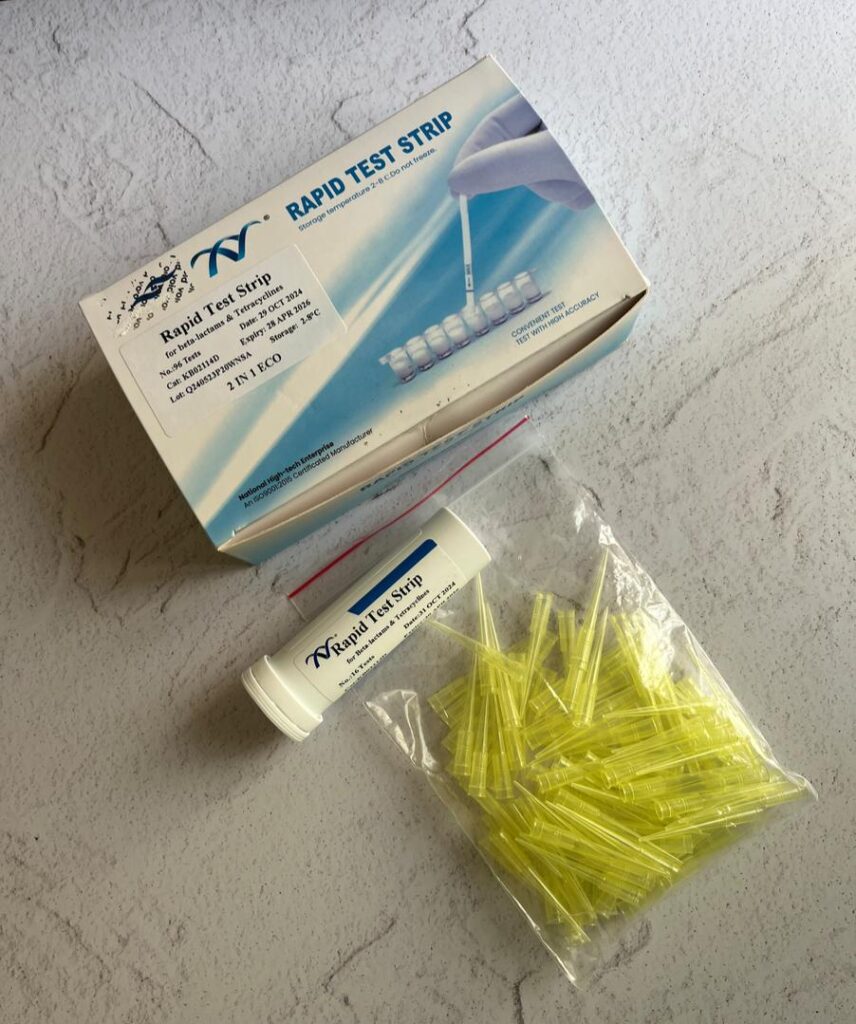 3 مقدار 222 میکرو لیتر از شیر مورد نظر را درون ویال ریخته و حداقل 5 بار مرتب اا هم بزنید تا نمونه با معرف موجود