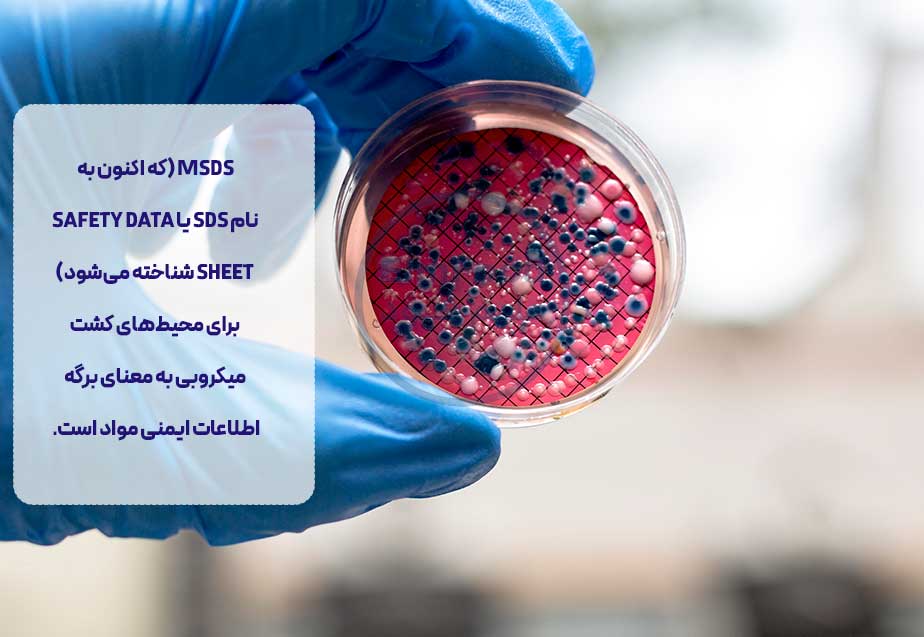 MSDS یک سند رسمی برای اطلاع از خطرات، اقدامات ایمنی و نحوه استفاده، نگهداری و دفع محیطهای کشت است.