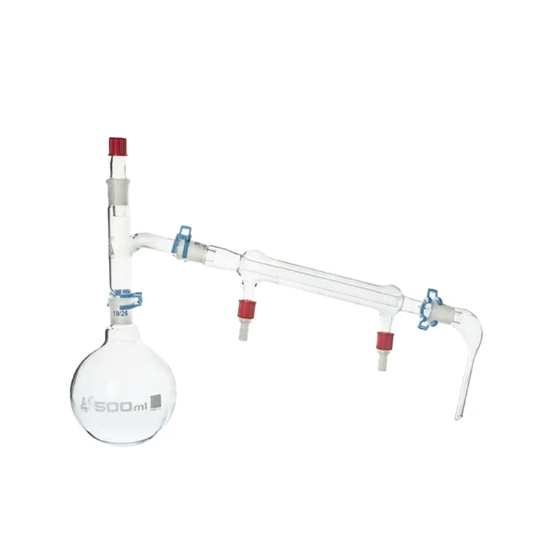 ست تقطیر 500 ml معمولاً برای مقادیر کم مواد به کار میرود و برای آزمایشگاههای آموزشی و تحقیقاتی ایدهآل است.